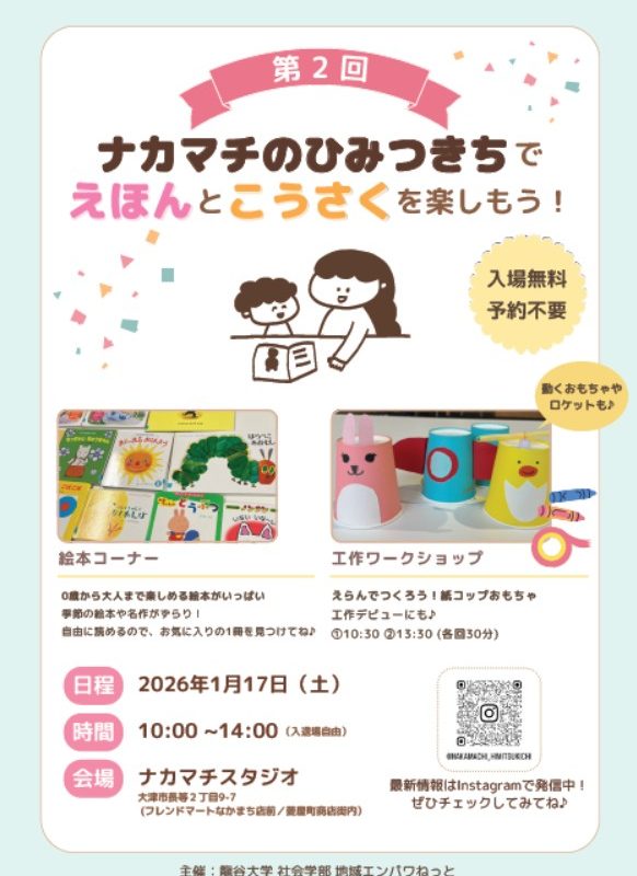 1月17日(土)ナカマチのひみつきち(えほんとこうさくを楽しもう!)